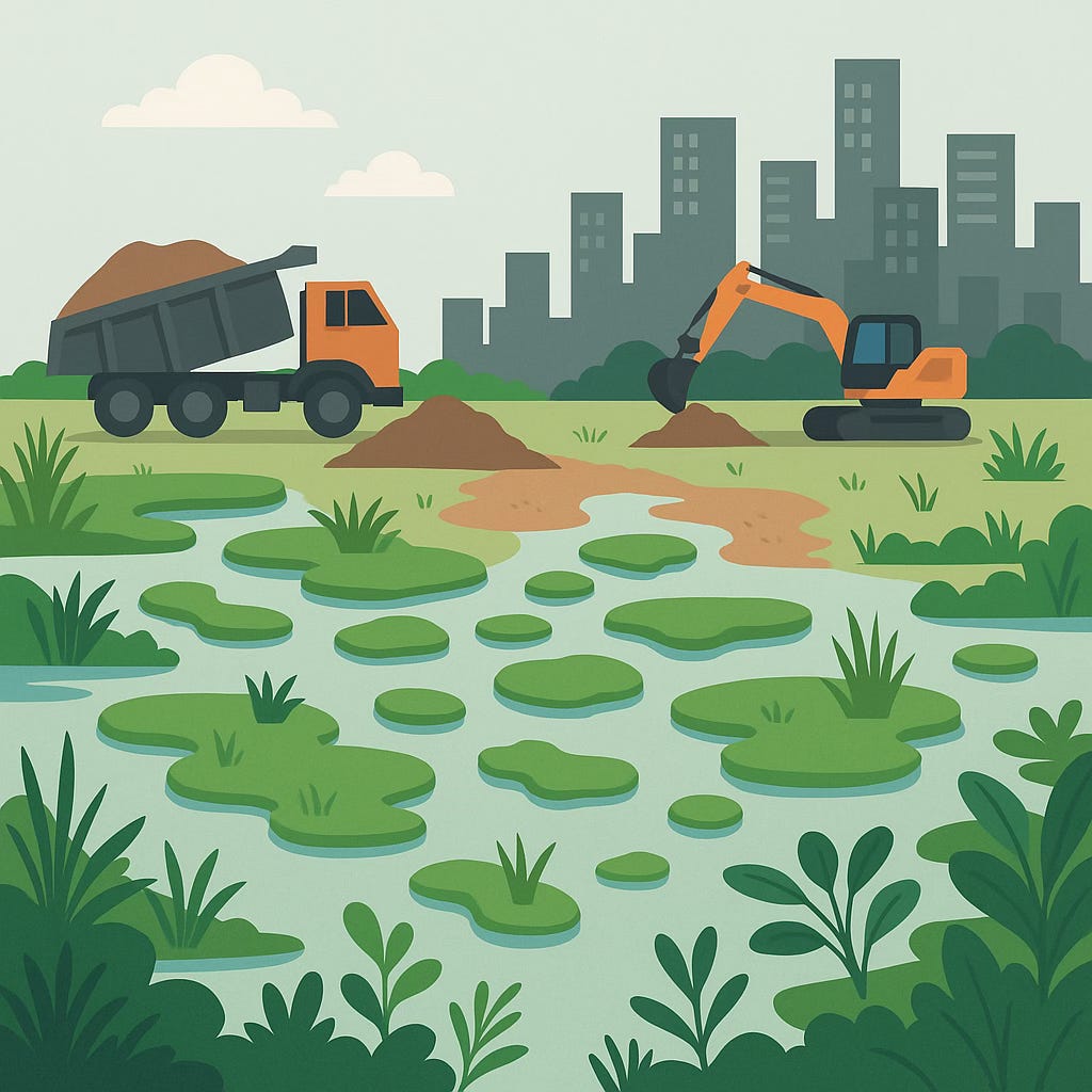 This is a major threat to the global climate. When wetlands are broken apart, they lose their ability to store carbon, purify water, and support wildlife.
